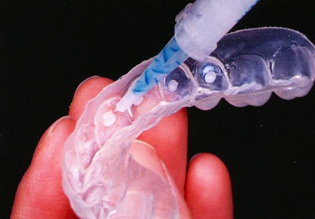 自宅で自分でする時は、1回目に歯科医院で歯の型を取り模型を作ります。2回目の来院時までに、歯の型に合わせてホワイトニング剤を盛る透明のマウスピースを作っておきます。そして、2回目で、マウスピースとホワイトニング剤を持って帰り、自宅で夜寝ている間などにホワイトニング剤を盛ったマウスピースを数時間つけておきます。
