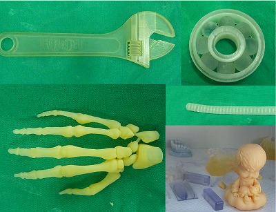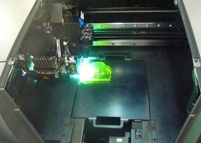 ここの装置は、3Dプリンターと言って、プラスチックの素材で作る場合で、具体的にはインプラントのドリルガイドなどを造ります。作り方は、まだ固まっていないペースト状のプラスチックをノズルから少しづづ出しながら形を造り光線で固めてプラスチックの塊をつくっていきます。