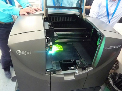 今日は実際にここで使われている3Dプリンターを診せて頂きました。600~700万円くらいだそうです。これもまだ、あまり日本では、みかけないですが、二台設置されていました。