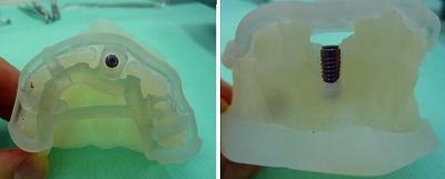 今日はインプラントのドリルガイドを使って模型にインプラントを埋める実習をしました。