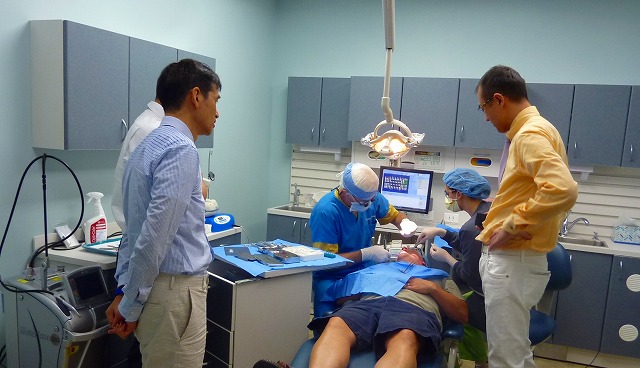 前置きが長くなりましたがここでもバイコンインプラントの手術の見学をさせていただきました。一本だけでしたが、上の歯のインプラントで骨が少なく鼻の空洞に骨を作る手術も併用して行うものでした。普通に日本でしているのとほとんど同じです。採血した血液を遠心分離してPRPをしたりウォータレーザを使ったりとなかなか勉強熱心な感じの先生でした。