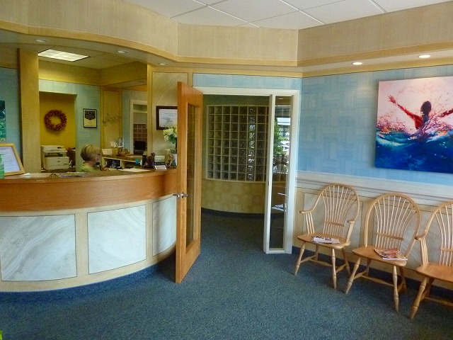 その病院に働いている歯科助手さんが日本人で国際結婚をしてそこに住んでいます。元々日本でも歯科助手をしていて、その時の院長先生がボストンに来るのでついでに見学をさせてもらう事になったようで、便乗して見学に参加しました。これが入口を入っての待合室です。