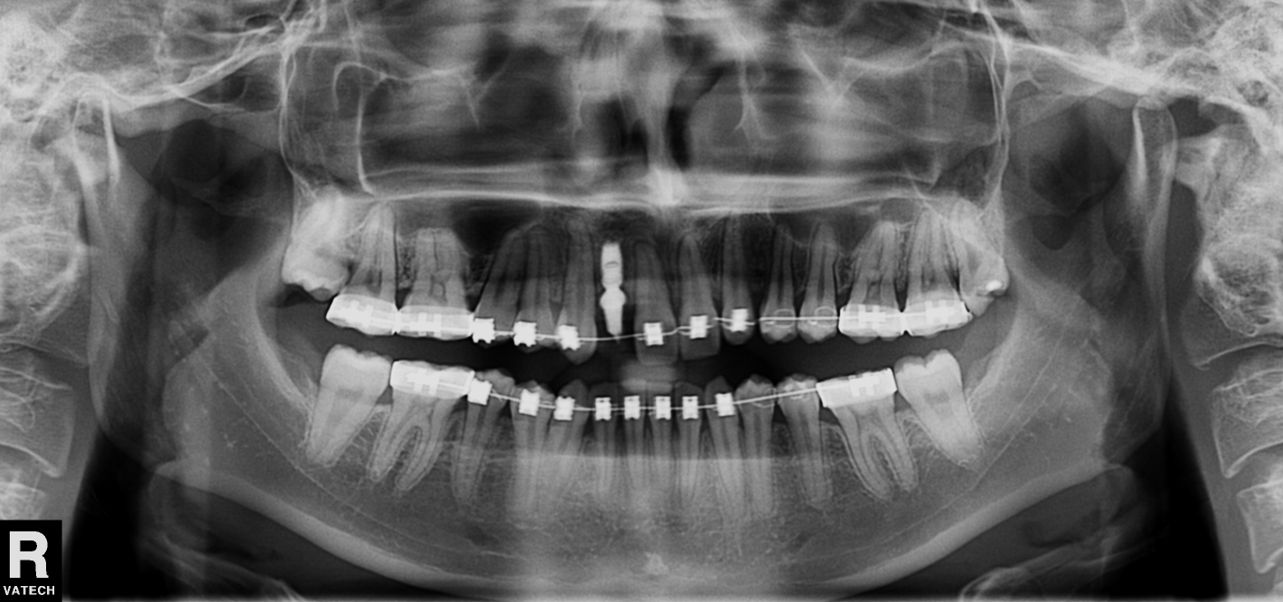 私は、前歯が2本先天的に欠損している症例について発表しようかと思っています。歯の本数が少ないので、全体的に歯が空いてきていたので矯正で位置をそろえてから、インプラントを入れました。レントゲンではこんな感じです。