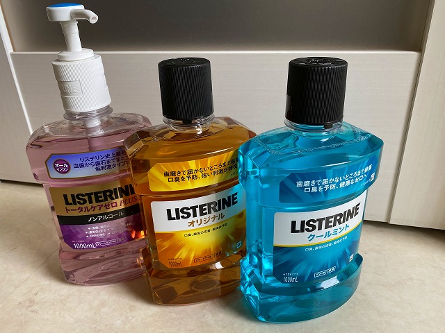 当医院でも、まずはリステリンで治療開始前にうがいをして頂く事にしました。味は3種類あり、アルコールの入っていない低刺激タイプですがやや辛い感じはします。治療前のリステリン液によるうがいのご協力をお願いいたします。
