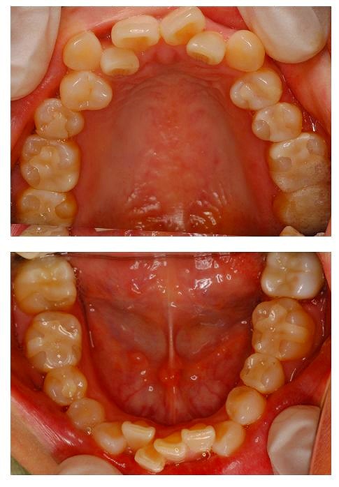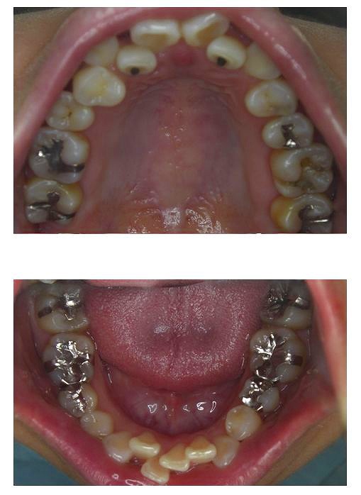 口の中を見ると、所々しか金属がはいってないようにみえます。