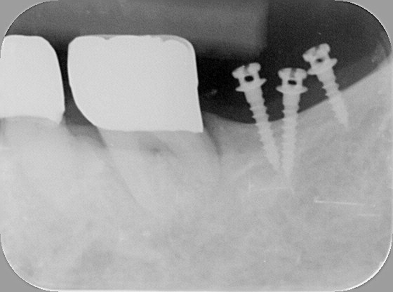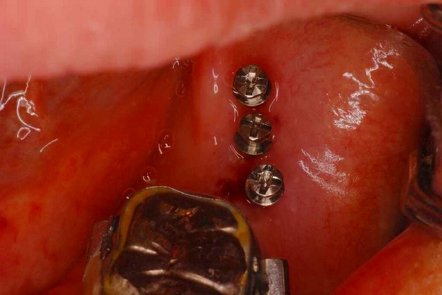 この方は上記の③の理由で、矯正を始められました。固定装置の補強用に三本のミニインプラントを入れました。