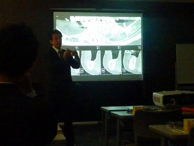 また、福岡支部長の葛西先生がCTの診断についてや、サージカルガイドと言ってコンピューターで作ったドリルのガイドを使った場合の講義をされていました。