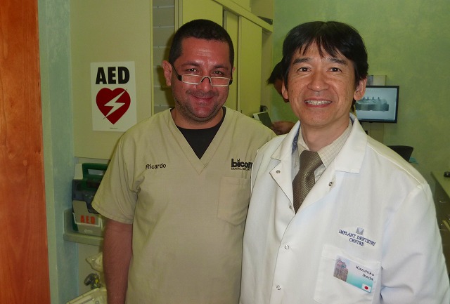 私の右側の先生が平山先生で日本人です。高校まで日本に居て、大学を受けるための英語学校に2年行って、それから大学4年行って、それから歯学部に4年行って合計10年かけてアメリカの歯科医師のライセンスを取られたそうです。現在では、バイコンジャパンの社長さんを兼任されていて、毎月1週間程度は日本に来て、インプラント指導医をされています。