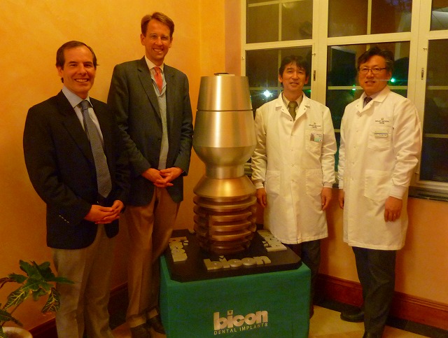 真中がバイコンインプラントの模型で左側の背の高い人が副社長さんで世界70ヶ国に輸出しているインプラントの販売や戦略立案をされているそうです。