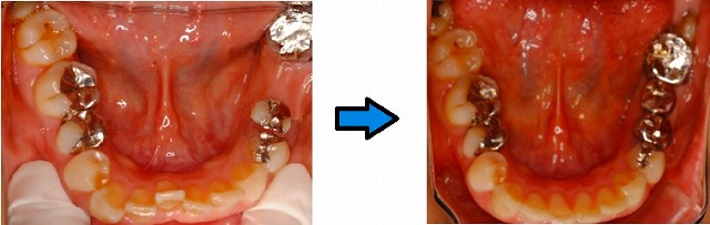 患者様としては、重なっている部分の着色が気になっていましたが、矯正後は歯ブラシも当てやすくなり着色しなくなったとおっしゃっていました。